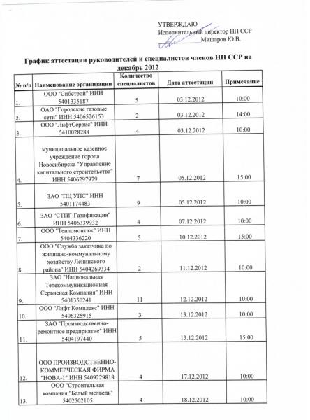 Внимание! Утвержден график аттестации работников - членов Партнерства на декабрь 2012 года