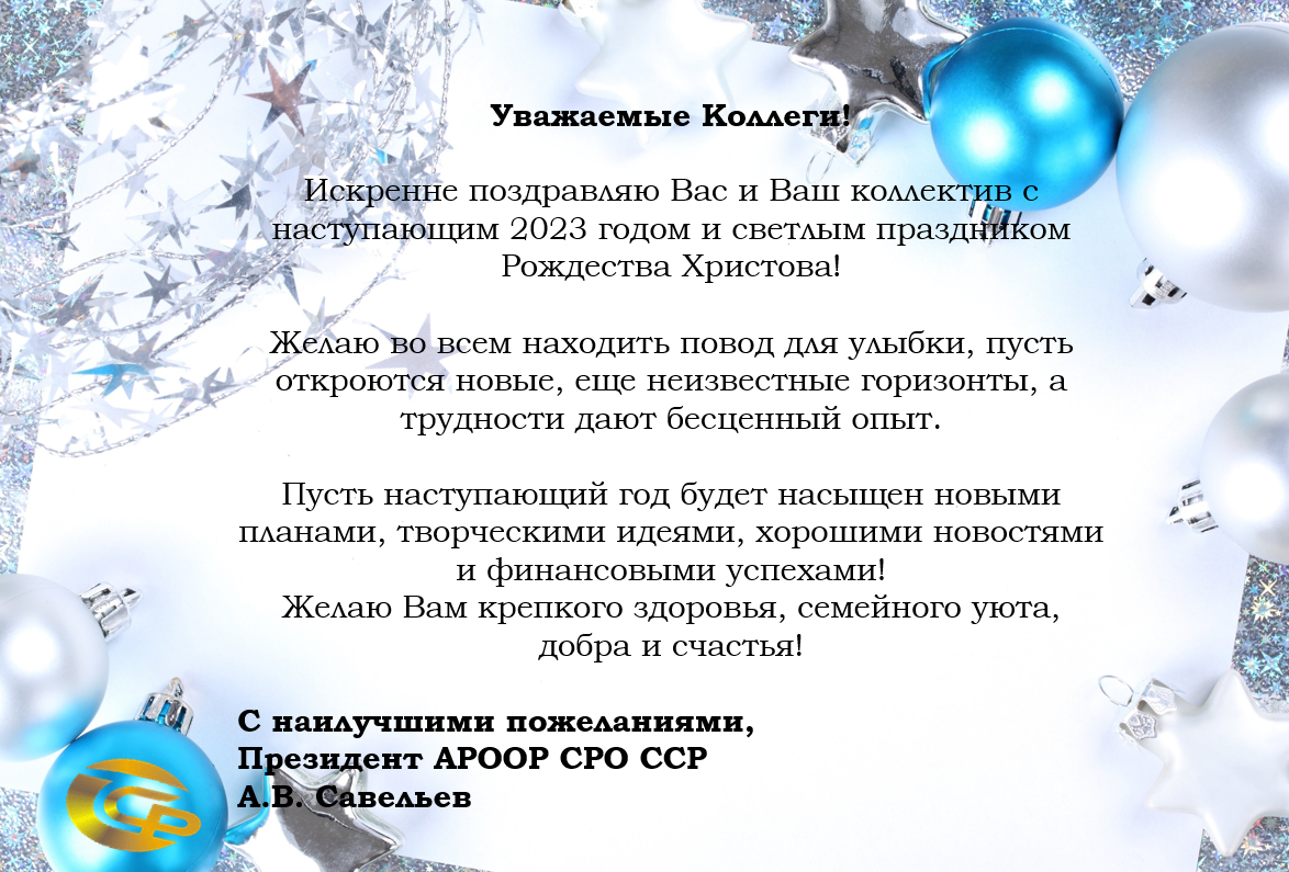 Президент Ассоциации Савельев А.В. поздравляет с наступающим Новым годом и Рождеством!