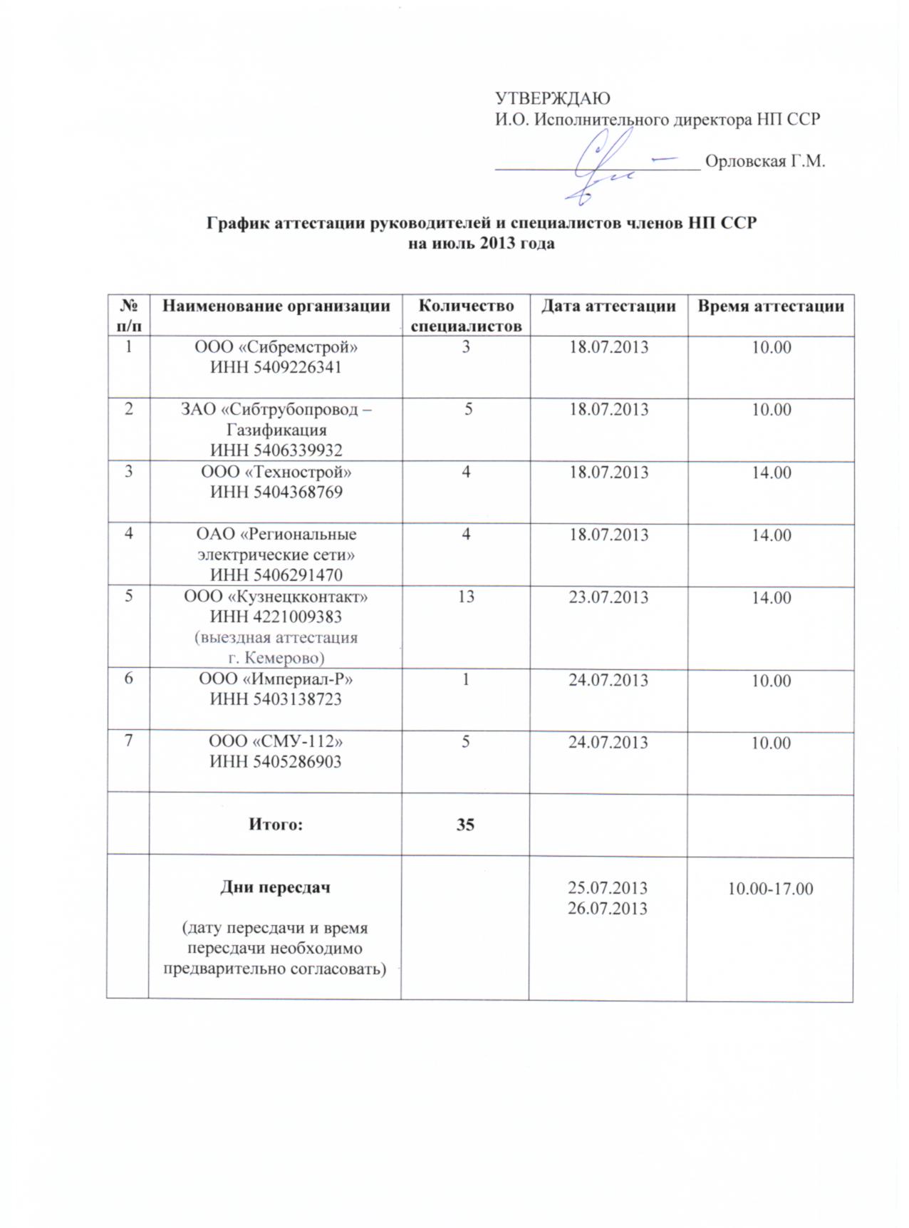 Внимание! Утвержден график аттестации работников - членов Партнерства на июль 2013 года