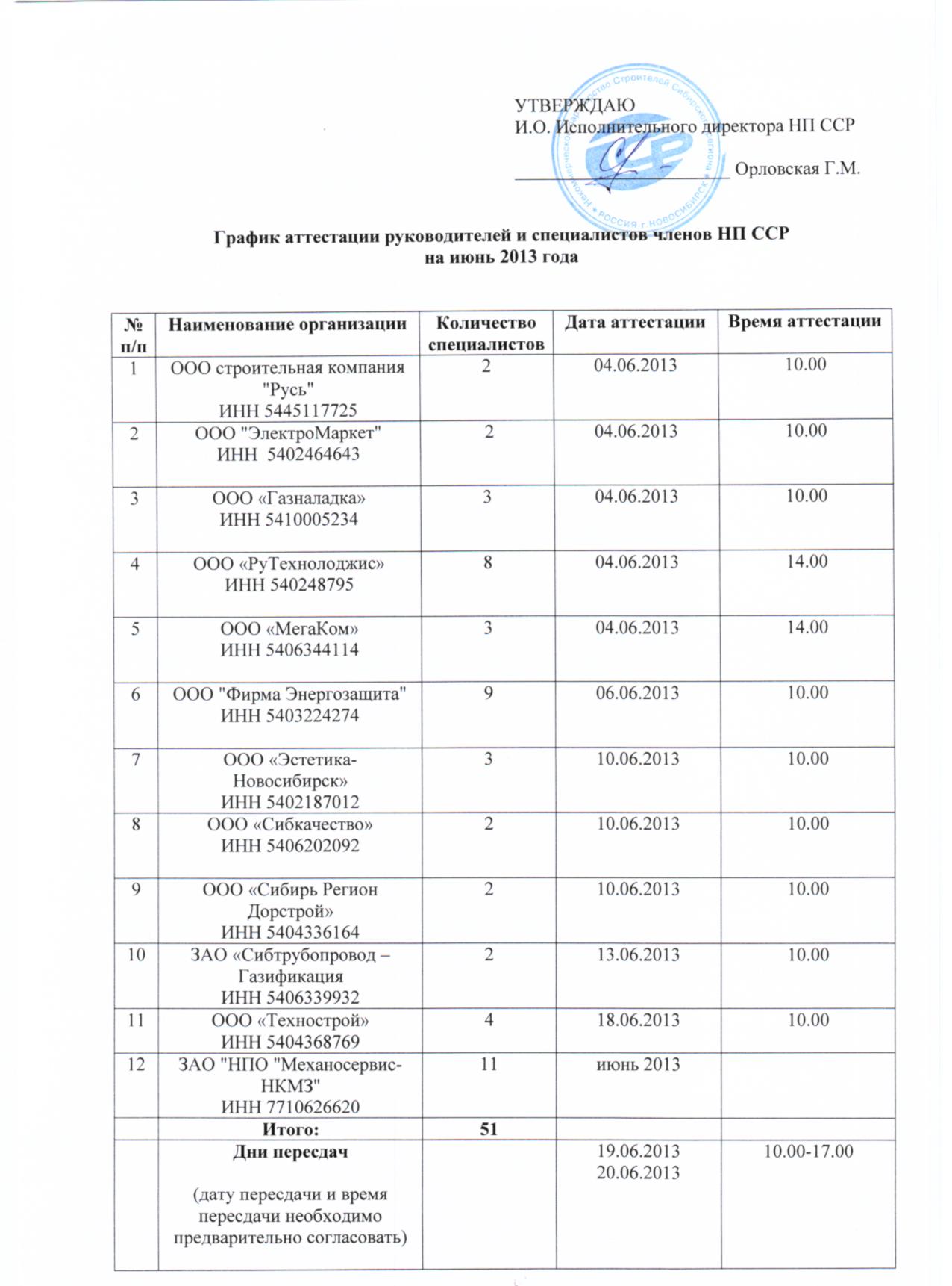 Внимание! Утвержден график аттестации работников - членов Партнерства на июнь 2013 года