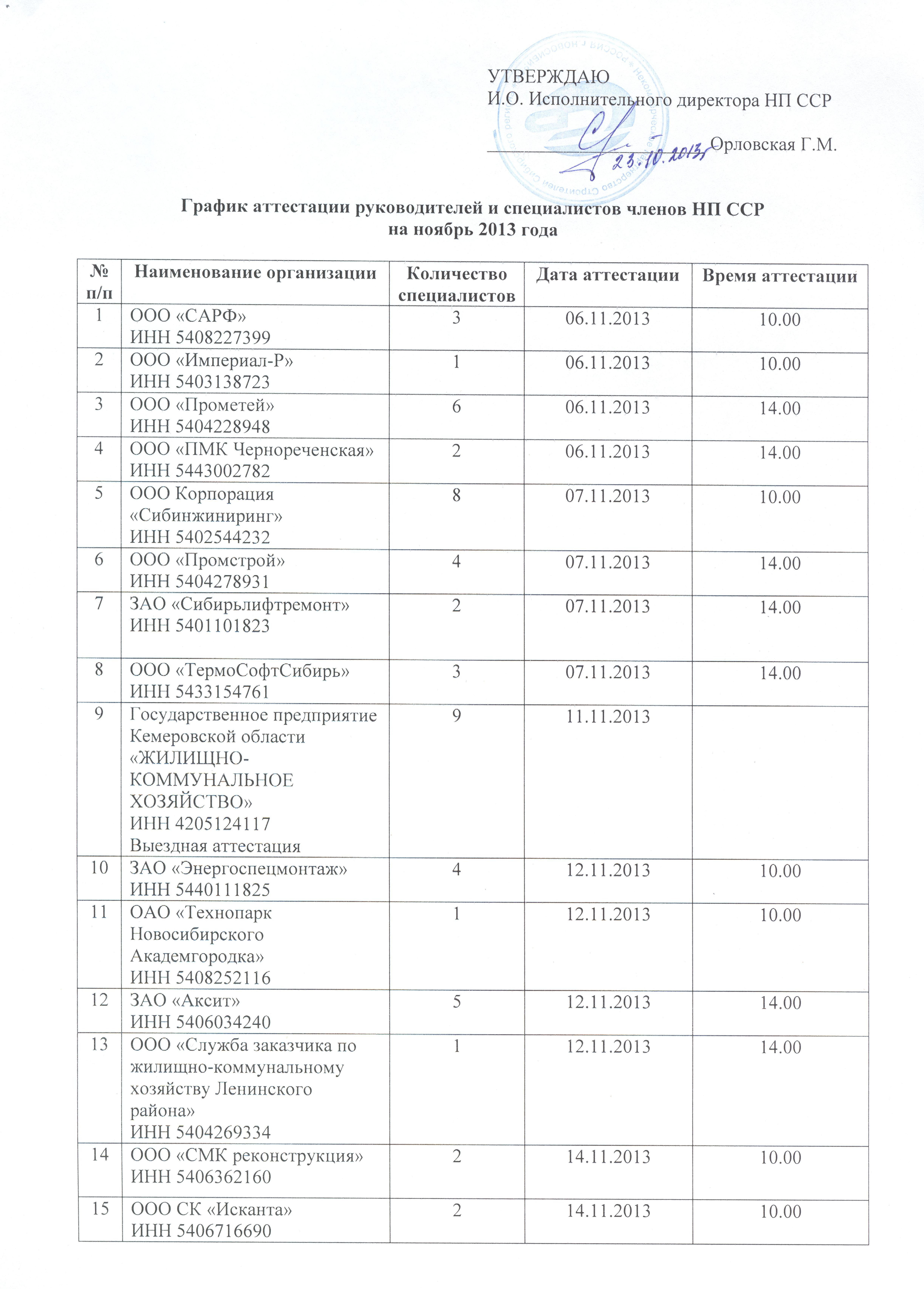 Внимание! Утвержден график аттестации работников - членов Партнерства на ноябрь 2013 года