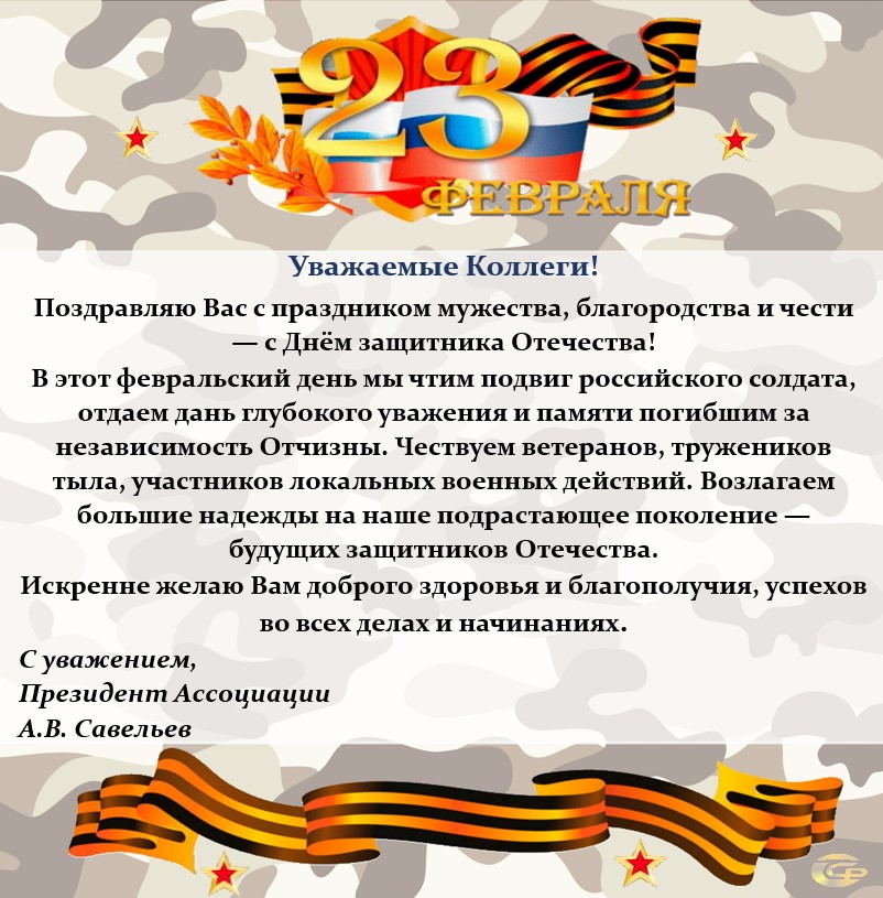 Савельев А.В. поздравляет с Днем Защитника Отечества!