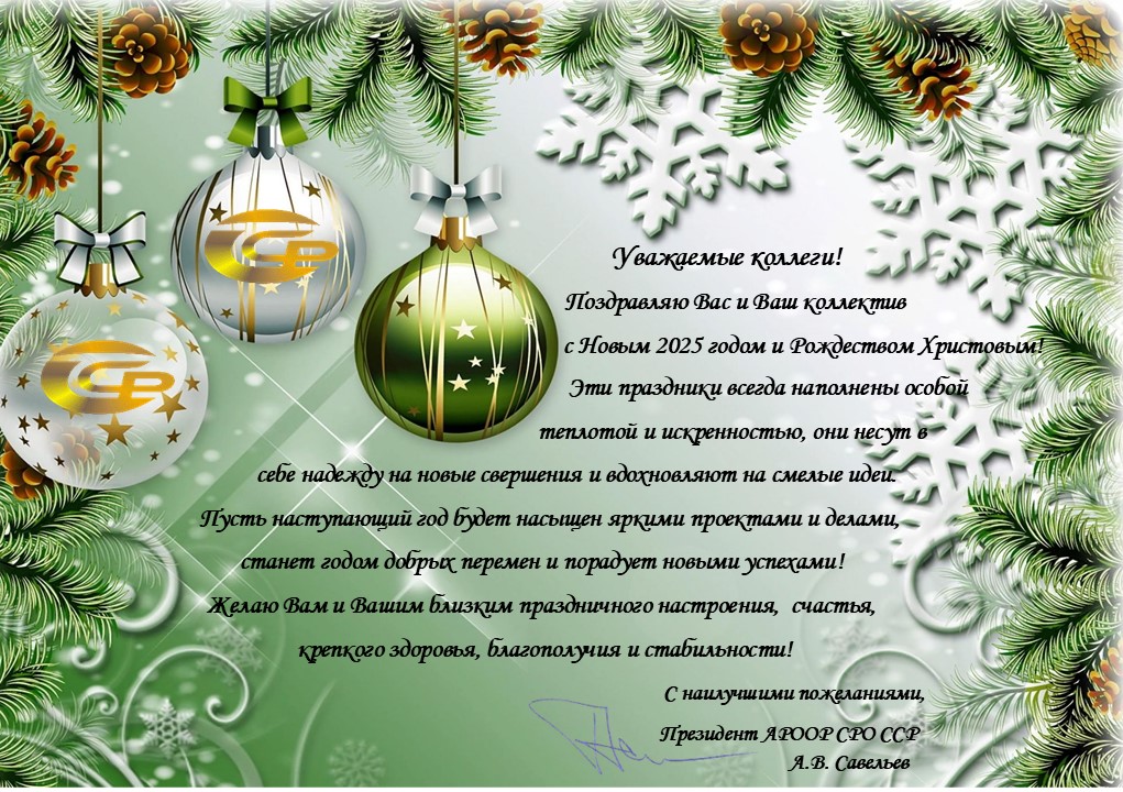 Президент Ассоциации Савельев А.В. поздравляет с наступающим Новым годом и Рождеством!